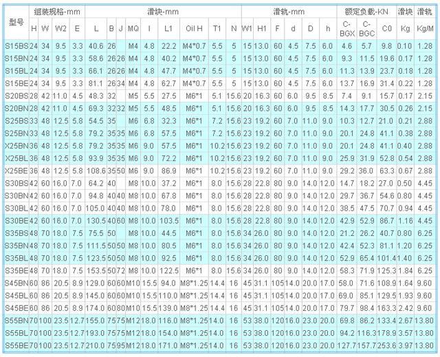 一種設備往往跟人的名字一樣,有多種稱呼。直線導軌也一樣!直線導軌又稱線軌、滑軌、線性導軌、線性滑軌,用于直線往復運動場合,且可以承擔一定的扭矩,可在高負載的情況下實現高精度的直線運動。在大陸稱直線導軌,臺灣一般稱線性導軌,線性滑軌。下圖為銳健直線導軌的規格負載等等的詳細參數!